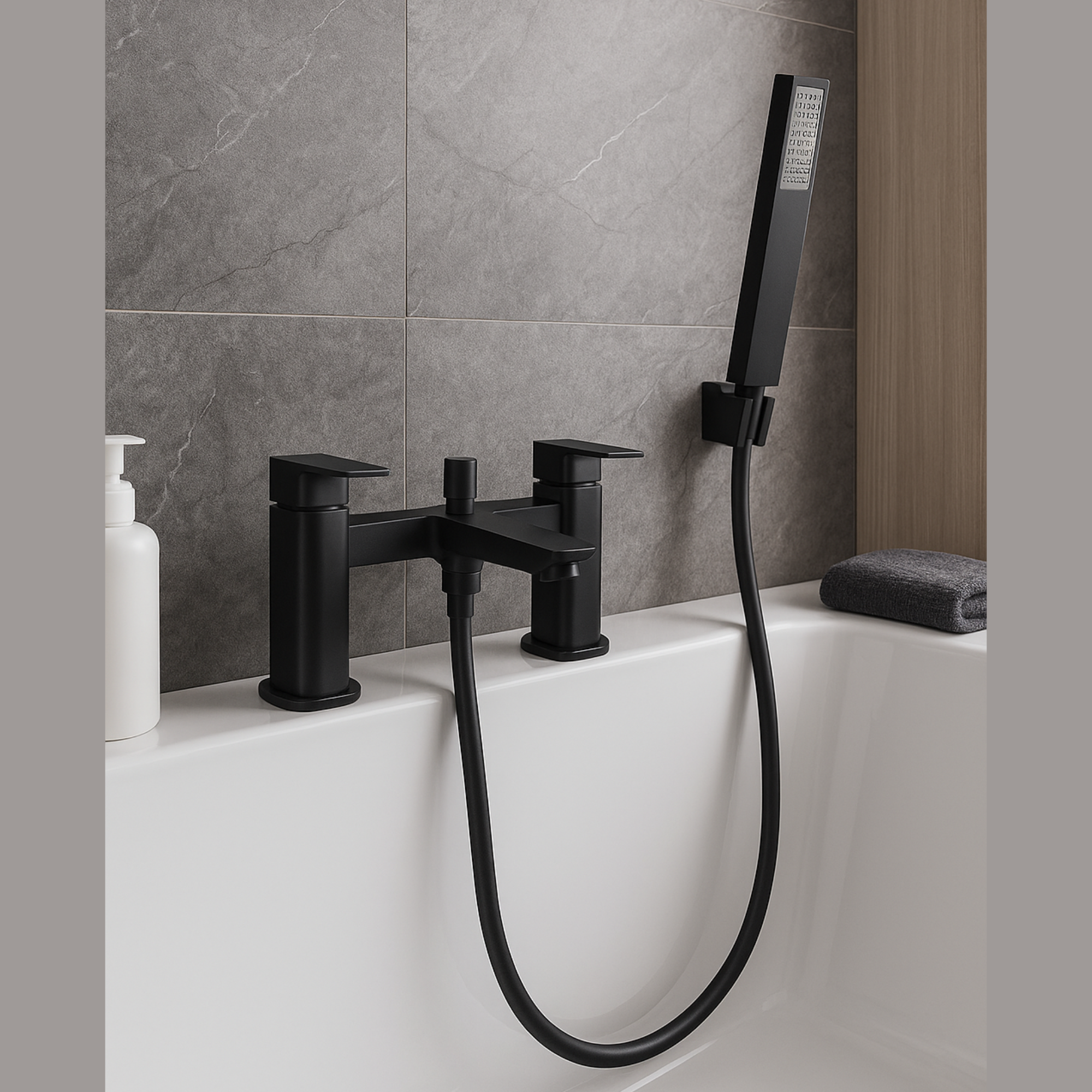 The Keenware Lunar Mayfair Bath Shower Mixer Tap is at the forefront of contemporary design, this on trend tap will impress in any bathroom with its sleek styling, slimline handles & high quality matt black finish.