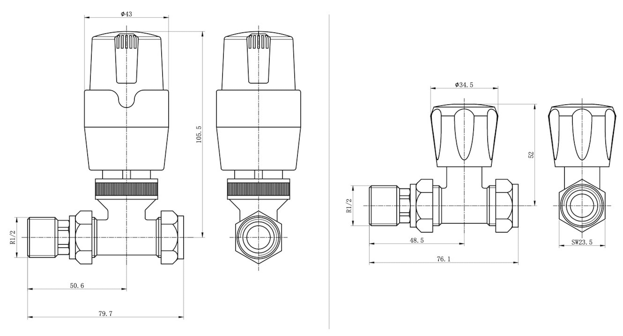 - One Pair (2) Thermostatic Towel Rail & Radiator Straight Valves