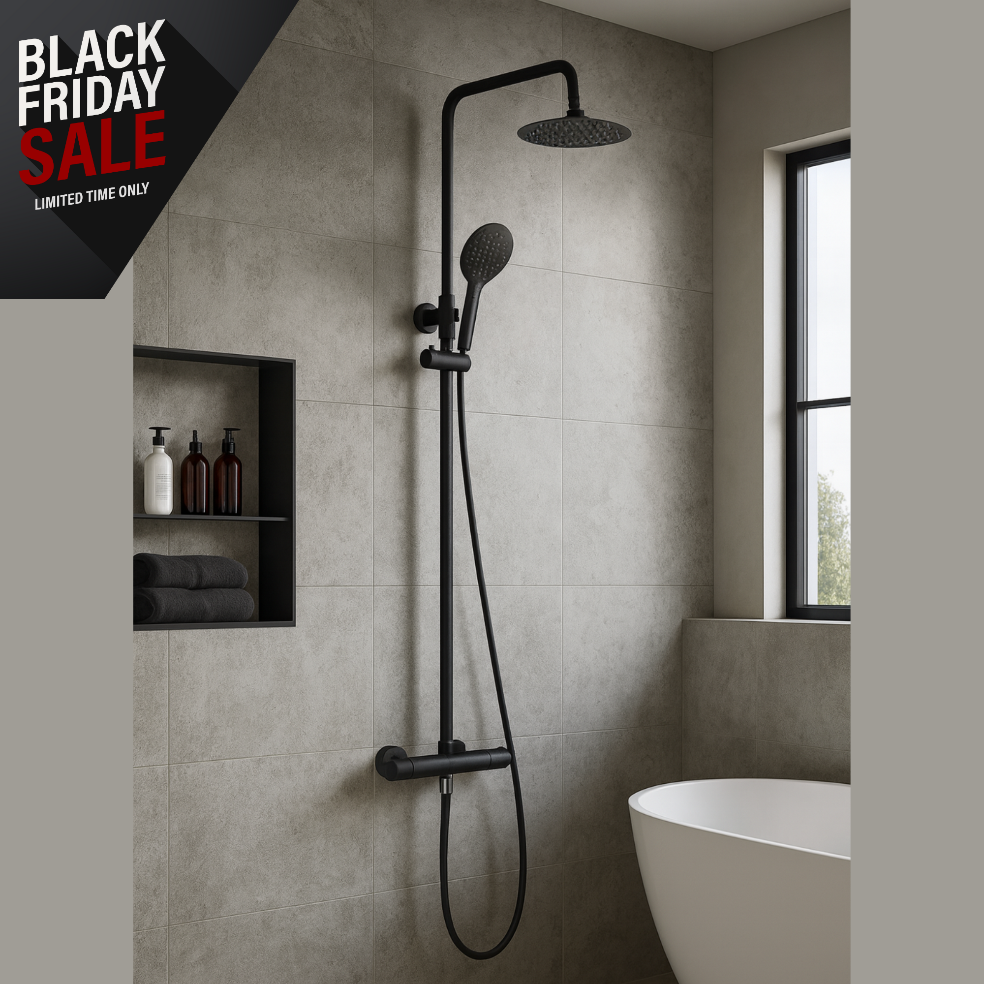 The Keenware Lunar Premium Black Overhead Thermostatic Shower System Is At The Height Of Current Bathroom Trends, This Beautiful Centre Piece Of Any Bathroom Oozes Contemporary Style.