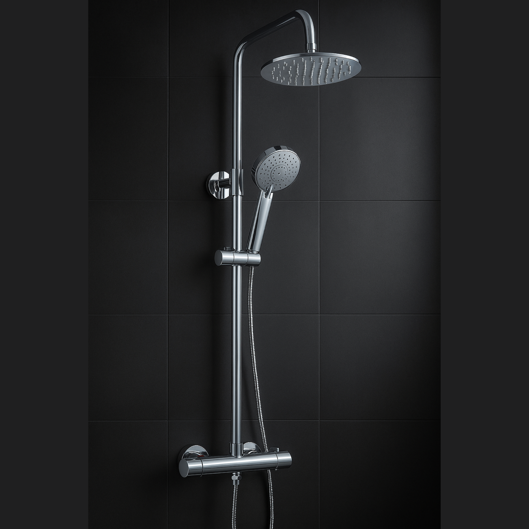 - 200mm Stainless Shower Head With Adjustable Rail Height: 820mm to 1270mm